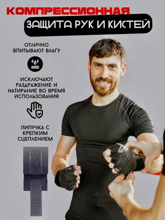 Эти эластичные бинты — незаменимый аксессуар для спортсменов любого уровня. Они плотно фиксируют кисть, запястье и суставы, снижая риск травм при ударах. Благодаря оптимальной длине 4.5метра бинты удобно наматывать даже новичкам, а фиксация остается надежной на протяжении всей тренировки.