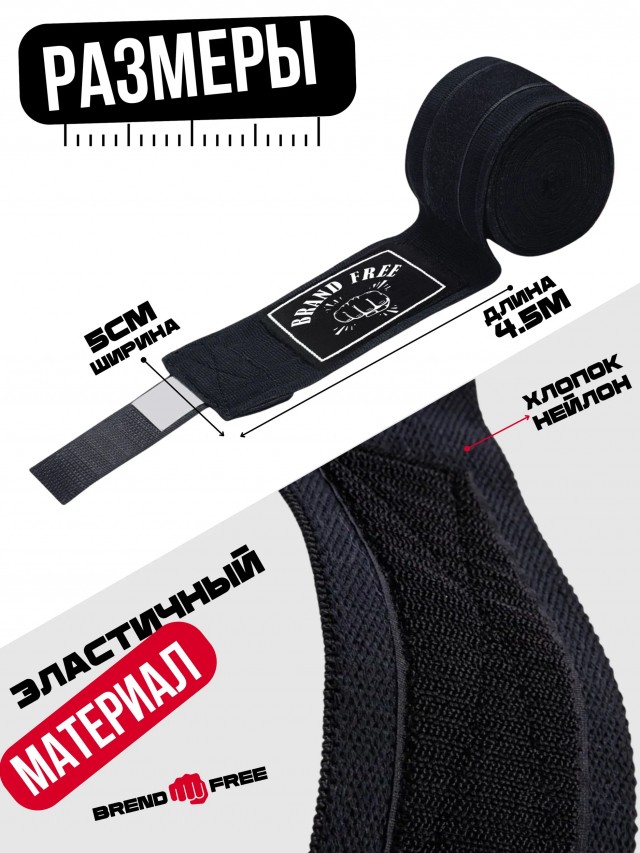 Бинт бокс. BRAND FREE 4,5м черный