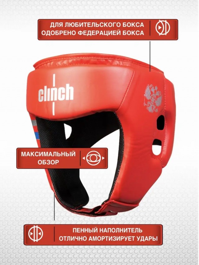 Шлем для бокса Clinch Olimp предназначен для тренировок разного вида, а также подходит для соревнований на территории РФ. Данная модель получила официальную лицензию от Федерации Бокса России. Для изготовления защитного шлема использован эластичный полиуретан, отличающийся продолжительным сроком службы. А внутренняя часть, гасящая силу удара, изготовлена из амортизирующей пены. Изделие фиксируется липучками и шнурком. Удобная система фиксации позволяет отрегулировать спортивный шлем по размеру, а также обеспечивает дополнительную защиту и высокий уровень безопасности на тренировках и выступлениях.