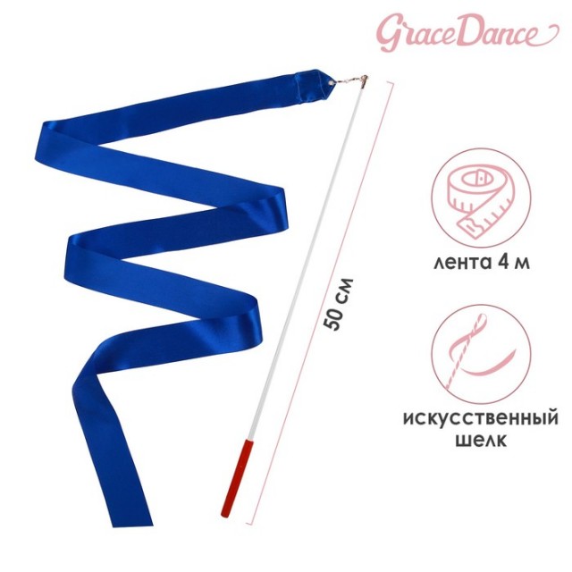 Лента худ гимнастика GRACE DANCE 4м с палочкой 50 см синий