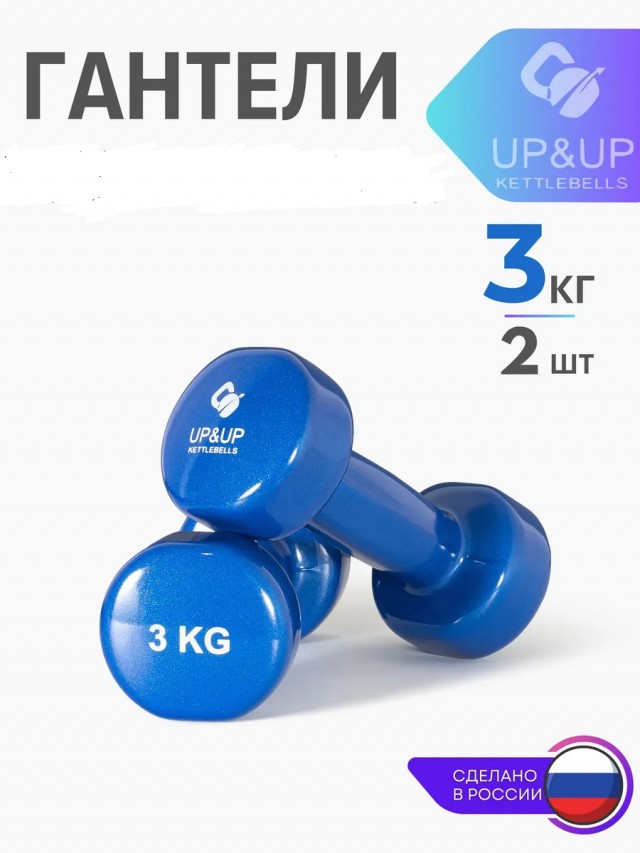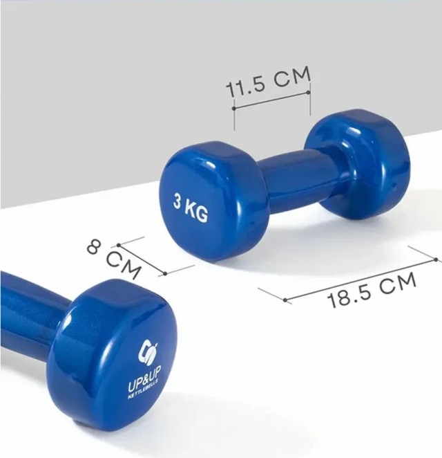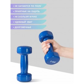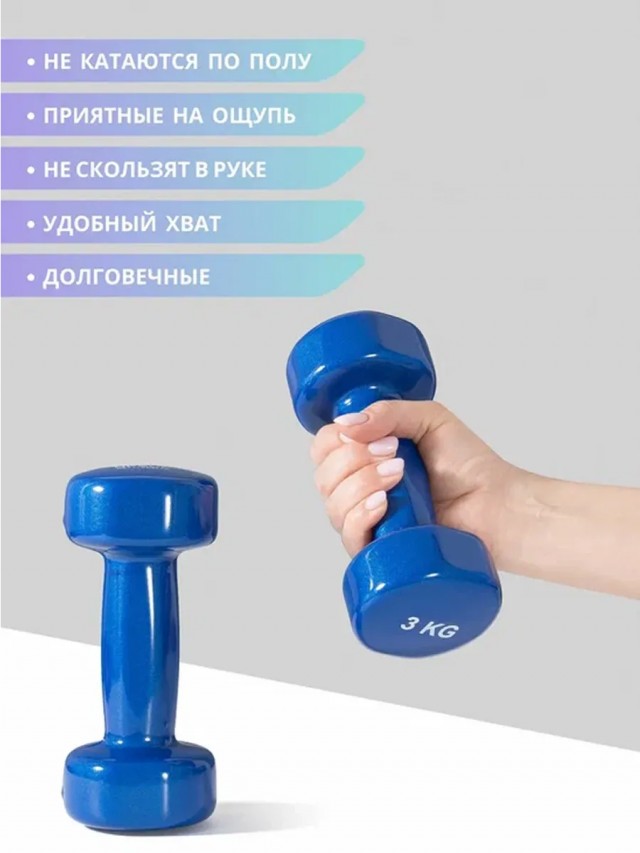 Гантели 3 кг 2 шт — идеальный выбор для тех, кто хочет начать заниматься фитнесом дома или в зале. Виниловый чехол обеспечивает комфортный хват и предотвращает скольжение во время тренировки. Гантели весом 3 кг подходят как для начинающих, так и для тех, кто уже имеет некоторый опыт в силовых тренировках. Используйте их для выполнения различных упражнений, направленных на укрепление мышц рук, плеч, спины и груди.