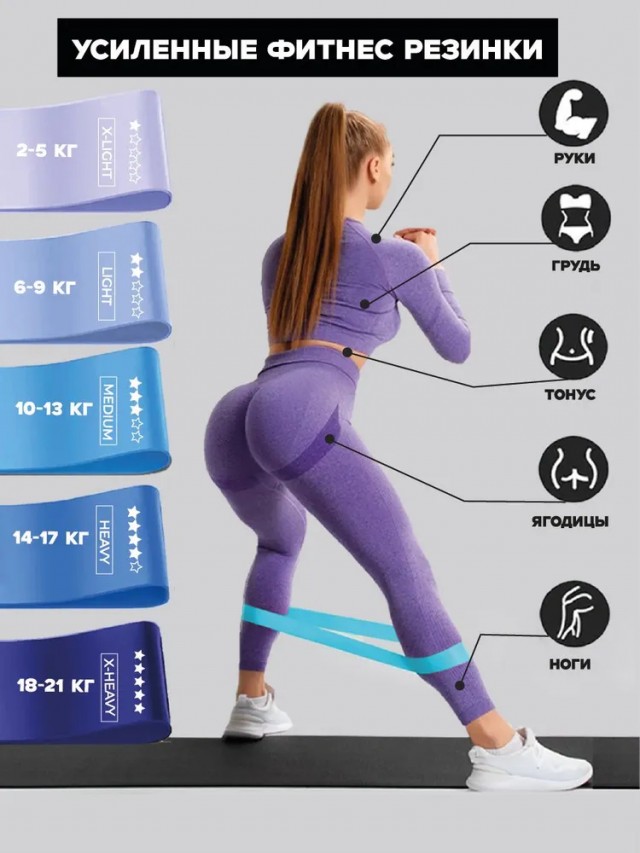 Резинки для фитнеса - универсальный и эффективный тренажер, который позволит вам включить спорт в свою жизнь даже не выходя из дома. Фитнес резинки используют для коррекции веса, увеличения мышечной массы, и просто для оздоровления всего организма за счет увеличения своей активности.