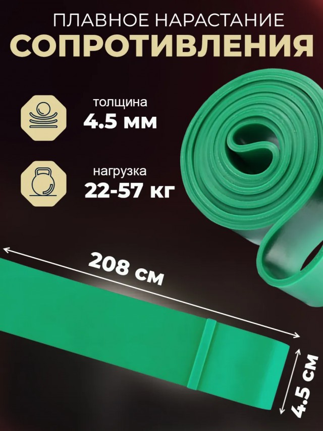 Эспандер ленточный GIZMO 22-57кг петля зеленый 208см