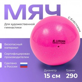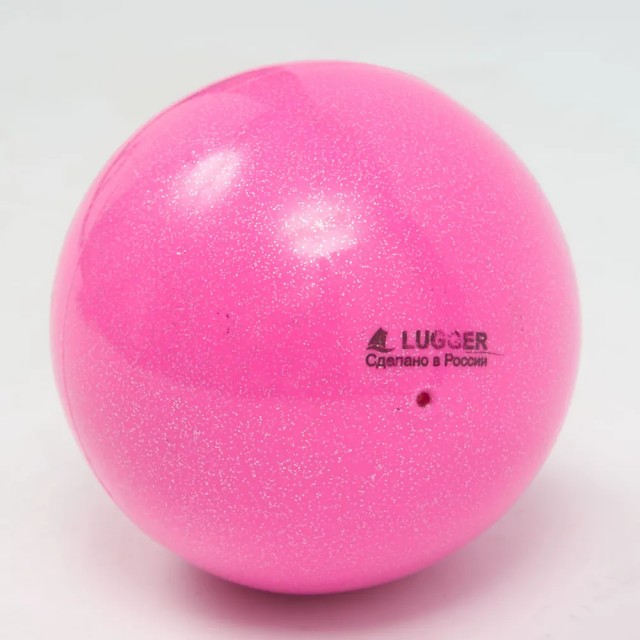 Мяч художественная гимнастика 15 см LUGGER розовый с блестками