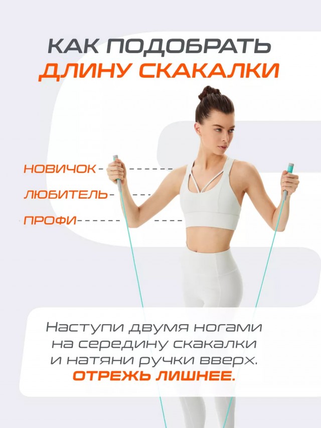 регулируемая длина; износостойкий шнур из ПВХ; ручки с силиконовым покрытием