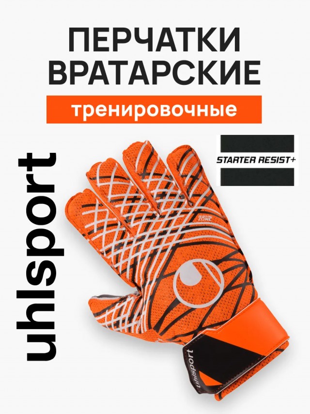 uhlsport Starter Resist — это оптимальный выбор для голкиперов, нуждающихся в надежной экипировке для регулярных занятий на искусственных покрытиях.