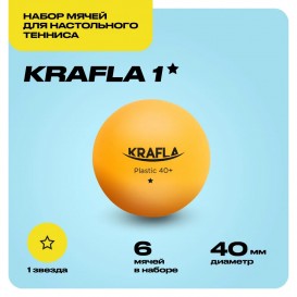 Мяч настольный теннис KRAFLA 40+ 1* оранж 1 мяч