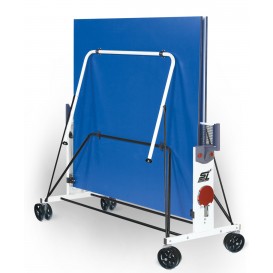 | Рама: | стальная с полимерным покрытием. Компактная система складывания с двойным механизмом фиксации игрового поля. Боковые опоры регулируются по высоте. Приспособление для удобного хранения ракетки. |