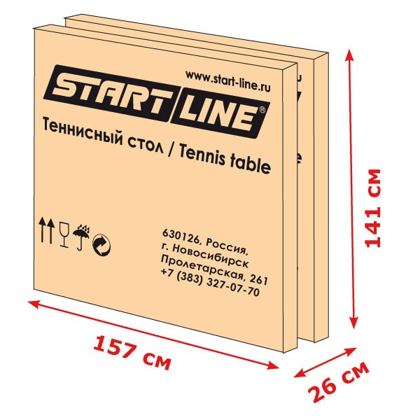 | Размер упаковки: | 2 шт. по длине 157 см, ширине 26 см, высоте 141 см. Стол поставляется частично в собранном виде. |