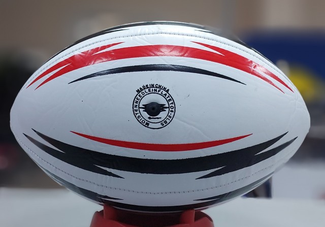 Мяч для регби,полиуретан, бутиловая камера, Официальный размер №5, линейная длина - 280-300 мм, длина продольной окружности - 740-770 мм, длина поперечной окружности - 580-620мм, вес 410-460 гр