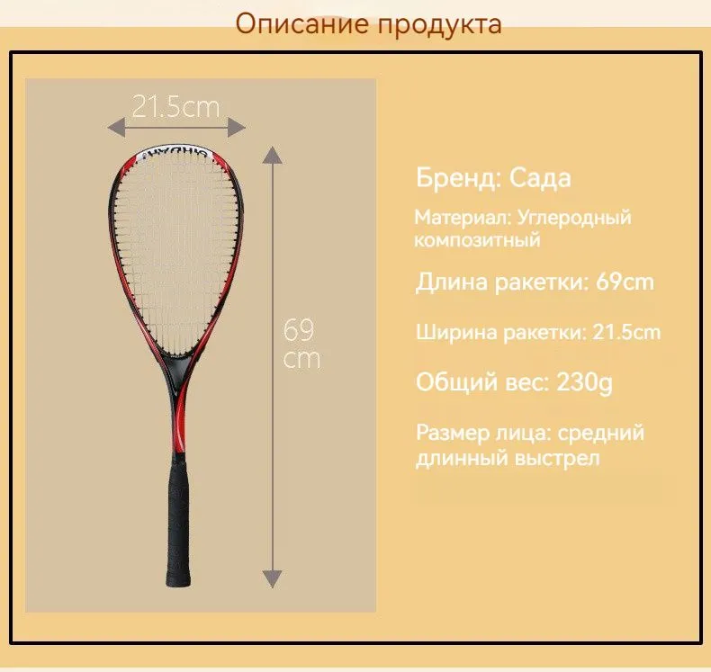 Профессиональная ракетка для сквоша длиной 69 см и весом 230 г без струны. Обладает сбалансированной конструкцией (баланс 21.5 см), обеспечивающей отличную маневренность и контроль удара. Эргономичная ручка и современные материалы гарантируют комфорт даже при длительных тренировках и соревнованиях. Подходит как для начинающих, так и для опытных игроков.