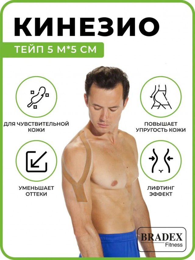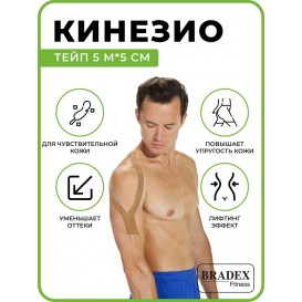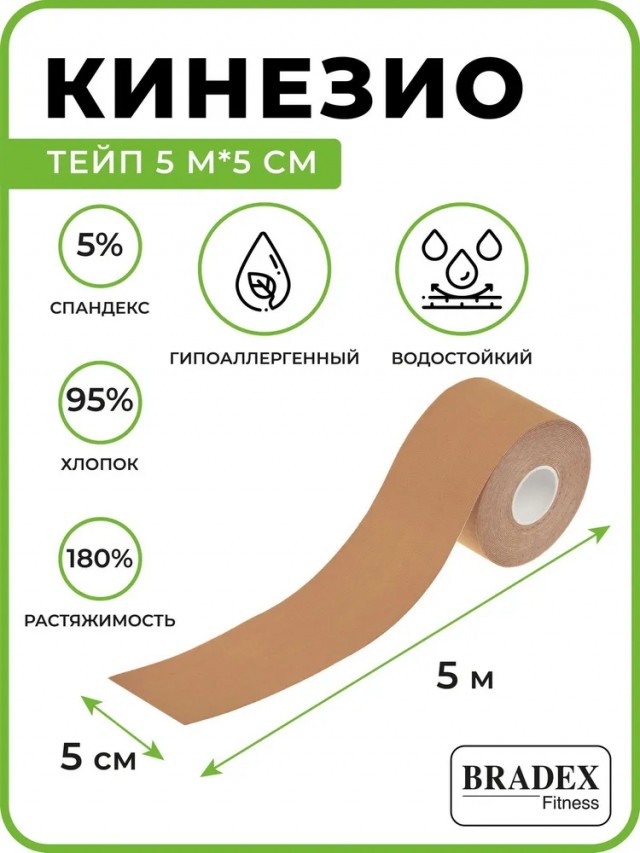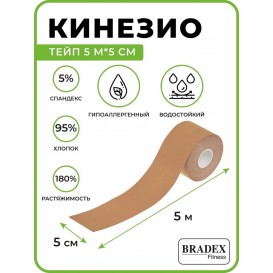 Кинезио-тейп BRADEX 5м х 5см водостойкий телесный