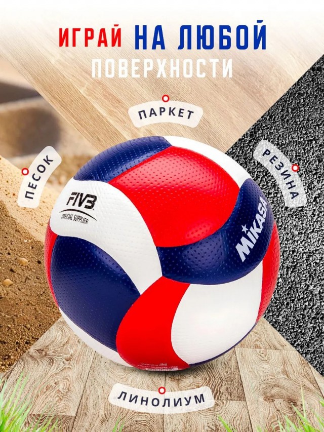 Мяч волейбольный MIKASA V200W сине-бело-красный реплика