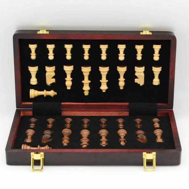 Шахматная доска размером 30х30 см, выполненная в приятном коричневом цвете, оснащена удобными магнитными фигурами, которые надежно крепятся к полю, предотвращая случайное смещение во время игры. Это особенно ценно при игре в дороге или в условиях ограниченного пространства.