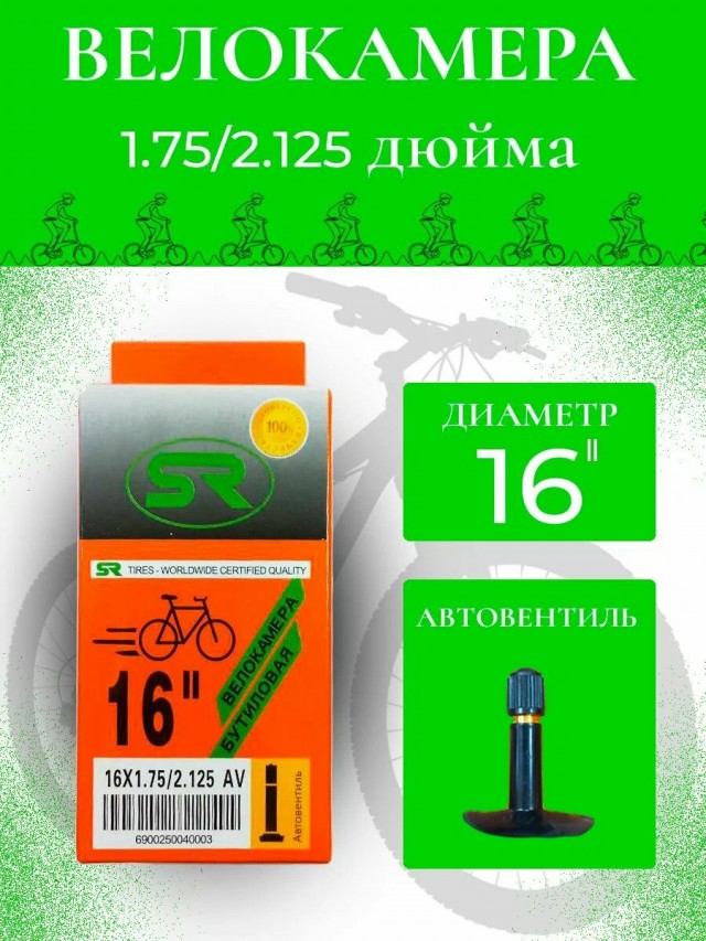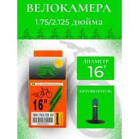 Камера велосипедная 16*1.75/2.125 (47-305) Велокамера подойдет для велосипедов с размерами покрышки 16 дюймов 16х1.75 16х1.95 16х2.125 . Камера для велосипеда имеет автовентиль A/V длиной 35мм Велосипедная камера произведена из высокопрочной и эластичной резины бутил. Качественная резина сохраняет равномерное давление воздуха в колесе ,что заметно снижает износ вело запчастей . Все велокамеры размерного ряда ‘’Стайлер ’’ от 12’’ до 29’’ дюймов имеют оригинальную индивидуальную упаковку . Также у нас вы можете приобрести и качественные покрышки для велосипеда различных размеров .