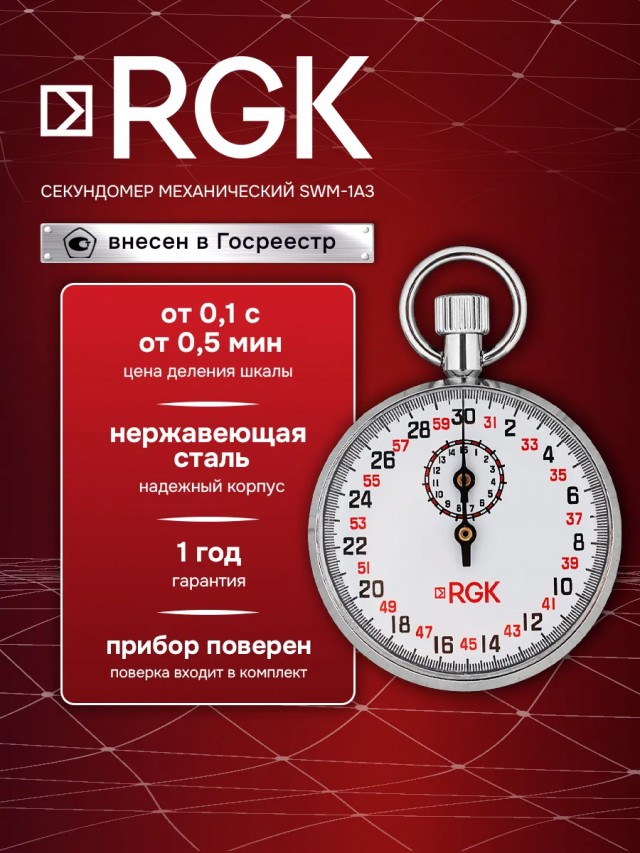 Секундомер механический RGK SWM-1A3 с поверкой 30 секунд / 15 минут
