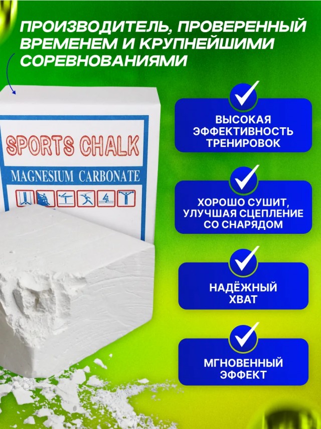 Безопасность и комфорт во время тренировок и соревнований - все это обеспечивает наша спортивная магнезия для рук.