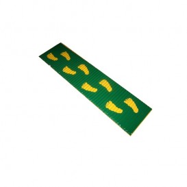 Коврик массажный с контрастными "следочками" с рифленой поверхностью изготовлен из высококачественной винилискожи с пластиковыми вставками-ребрами. Предназначен для профилактики плоскостопия у детей школьного и дошкольного возраста. Ходьба по коврику помогает улучшить координацию движений, чувство равновесия, ловкость, точность.