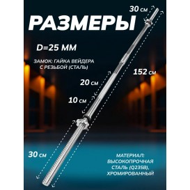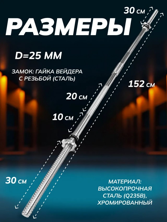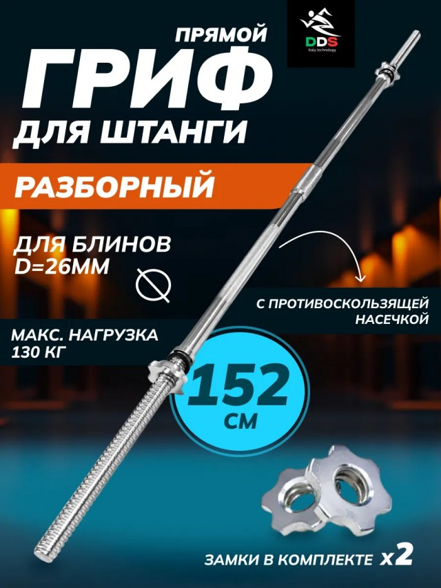 Разборный прямой гриф для штанги длиной 150 см от бренда DDS представляет собой высококачественное спортивное оборудование, идеально подходящее для занятий спортом и прокачкой различных групп мышц. Спортивный инвентарь изготовлен из хромированной стали и обеспечивает отличную прочность и долговечность, а также легкость в использовании благодаря его изогнутой форме. Длина 1,5 метра и диаметр 25 см позволяет осуществлять широкий спектр упражнений, это делает его незаменимым инструментом для спортсменов различных уровней подготовки. Он удобный и хваткий, а также разбирается пополам, из-зи этого его удобно хранить и не занимать много места. В комплекте поставляются два надежных резьбовых замка. Выбирая спортинвентарь от ДДС, вы гарантируете себе безопасность и эффективность тренировок и сможете создать тренажерный зал у себя дома. В нашем магазине вы сможете приобрести множество товаров для фитнеса, спорта и домашних тренировок.